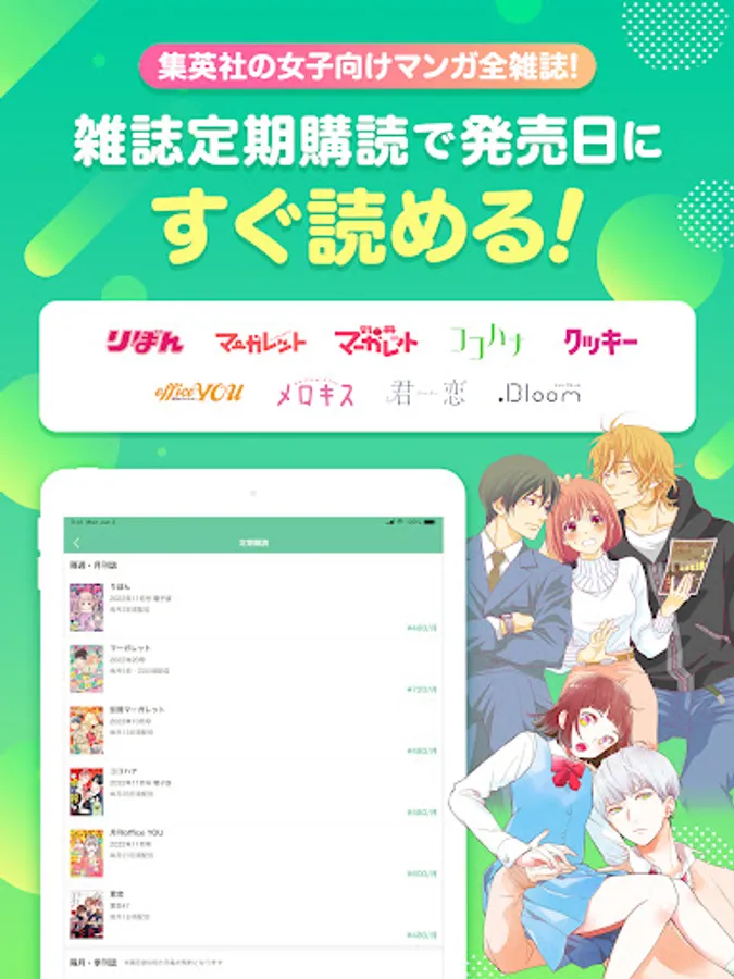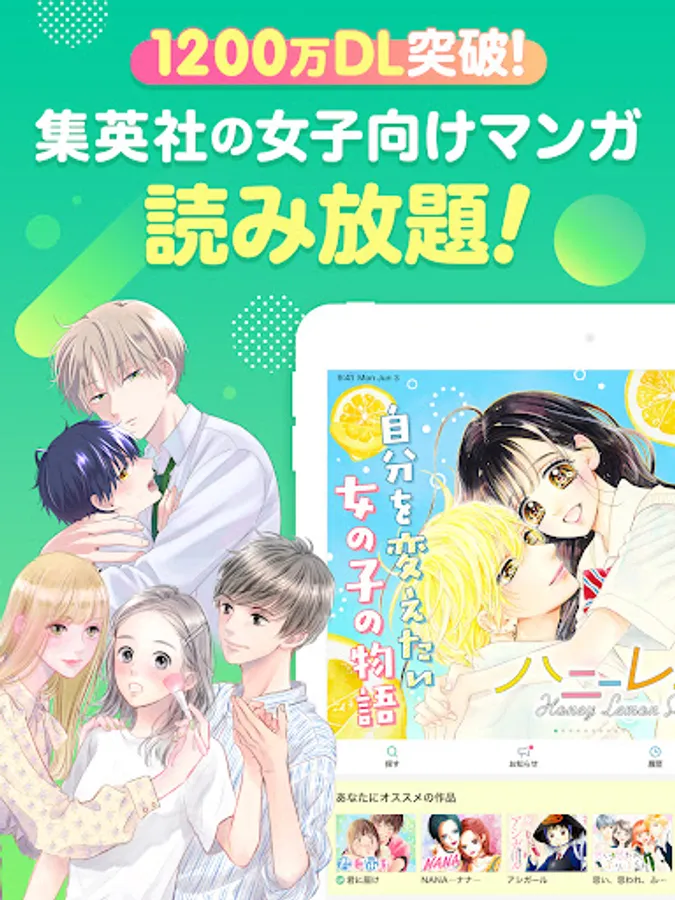 ・ I would like to try reading a comic book of a girl genre that is not usually seen or a manga popular with girls using a free manga app.