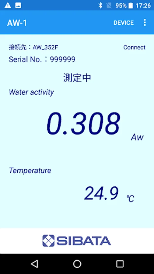 Water activity, temperature, and humidity values can be communicated in real time from the AW-1 main unit, and the measured values can be confirmed.