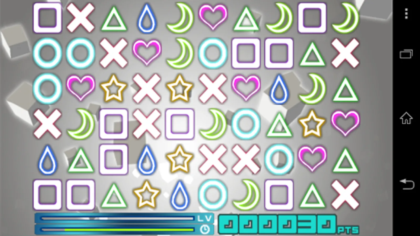 “PanelsPuzzle” is a puzzle game to erase colorful panels by arraying them in vertical or horizontal lines quickly. Get higher score by making use of items and connecting chains as many as possible!