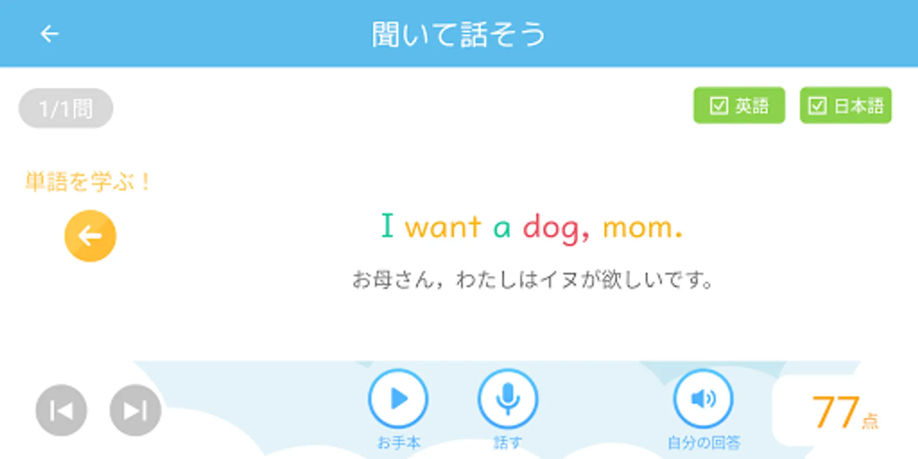 The AI will automatically grade your speaking and check the spelling of your handwriting.