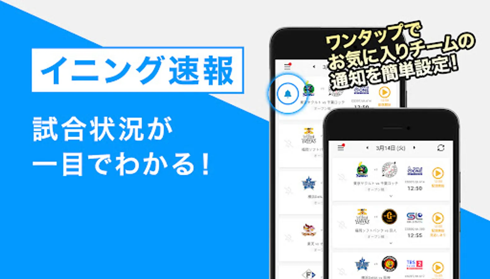 ・Supports "Breaking News"! You can watch other games with advance notice starters before the game and inning bulletins during the game.