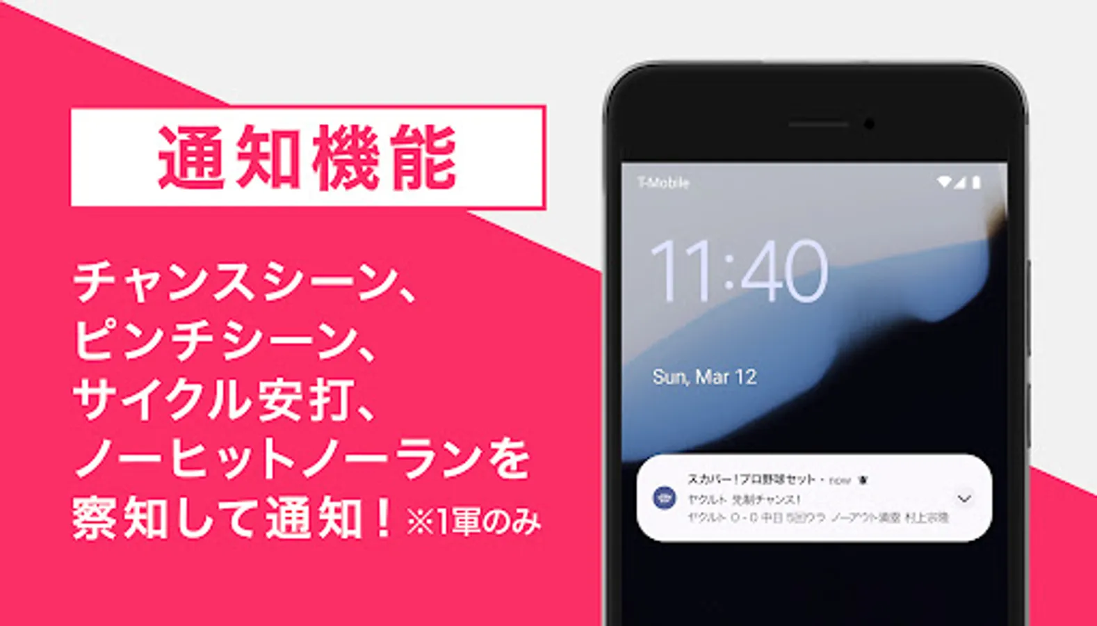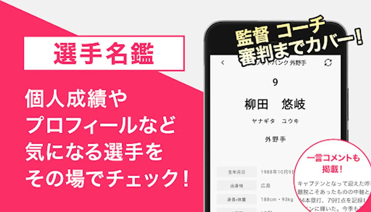 ・The notification function has been enhanced! You will receive a notification when a chance scene or pinch scene arrives for your favorite team. In addition, you will receive a notification when you complete a perfect game, no hit no run, or hit for the cycle.