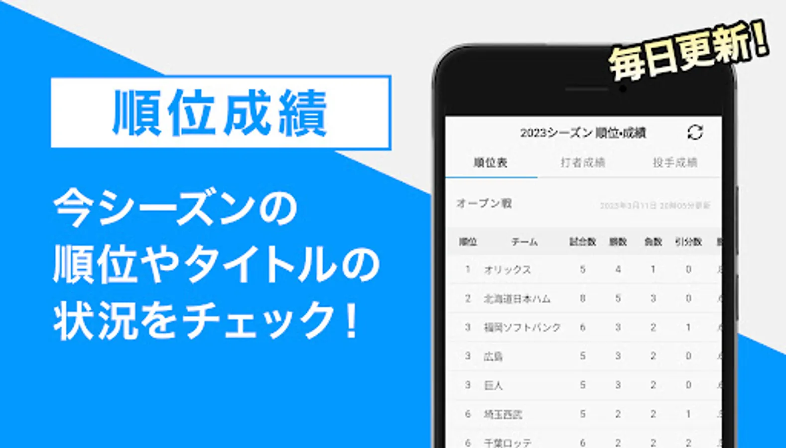 ・You can check the ranking of the Pacific League/Central League/open games, as well as the results of the batters and pitchers.