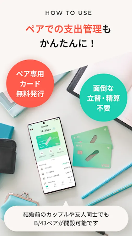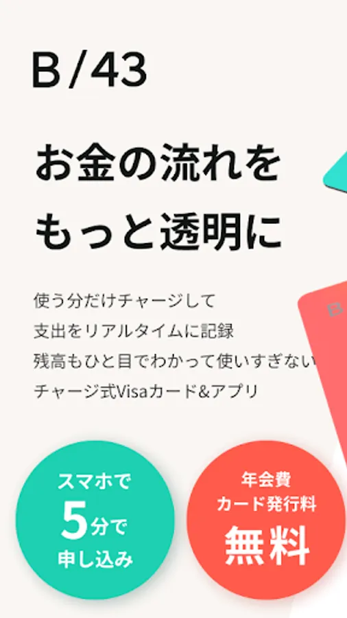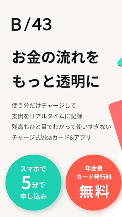 ・B/43 is a new spending management service called "Kakeibo Preca", which is a set of "Kakeibo App" and "Visa Prepaid Card".