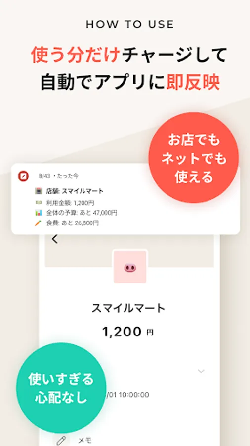 ・You can charge your monthly budget to the card and make daily payments, which are automatically recorded and visualized, so you can easily continue to manage your spending.