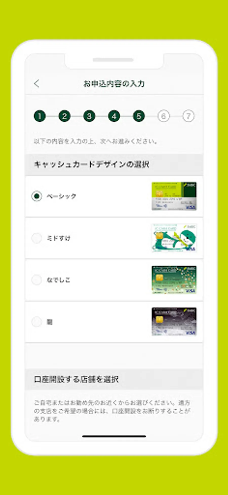 The account you apply for from this application will be applied for with a seal type and separate taxation. The seal will be delivered after returning the seal notification that is sent at the same time as the cash card. Please note that transactions that require a registered seal, such as transactions at the counter, cannot be carried out until you submit the seal registration form.