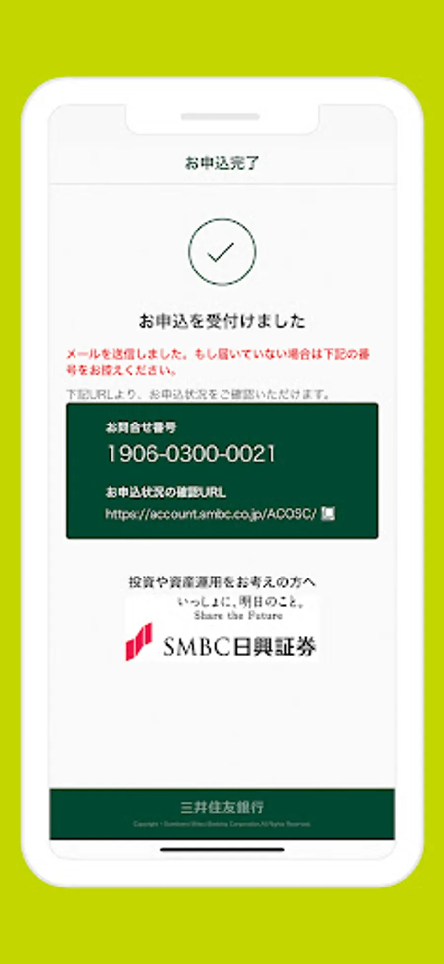 An account opening application provided by Sumitomo Mitsui Banking Corporation.