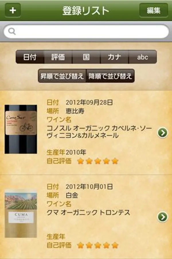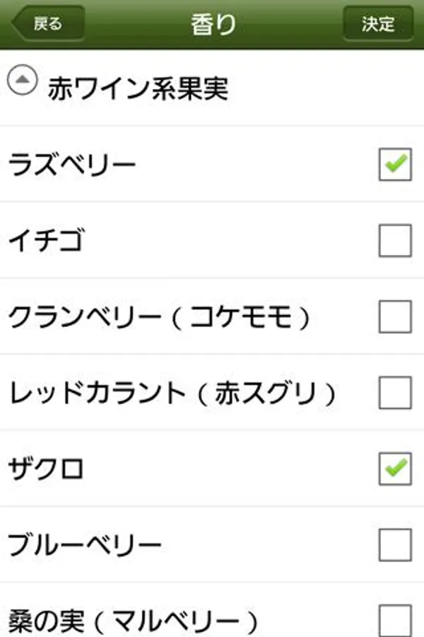1) Easy creation of a tasting note just by tapping and choosing tasting terms from the database edited by professional Wine Advisers.