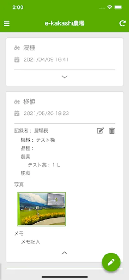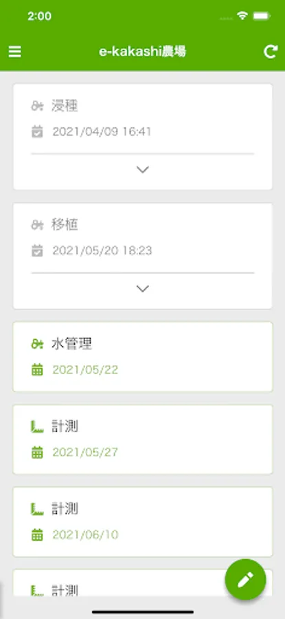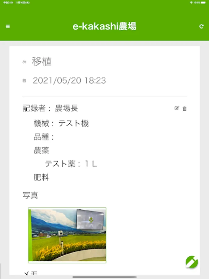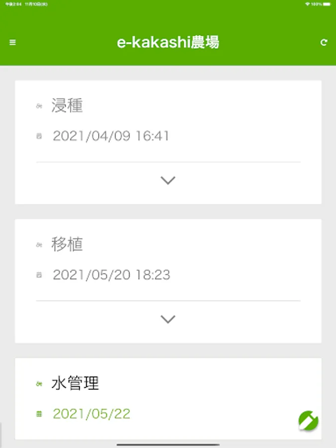 e-kakashi Note, how work when to implement in advance, can schedule an appointment date for each field can be confirmed in the list even work you have not done, is a work management tool. It prevents work omissions and duplication, and can also record growth such as the number of stems and leaves. Assists in advanced cultivation management.