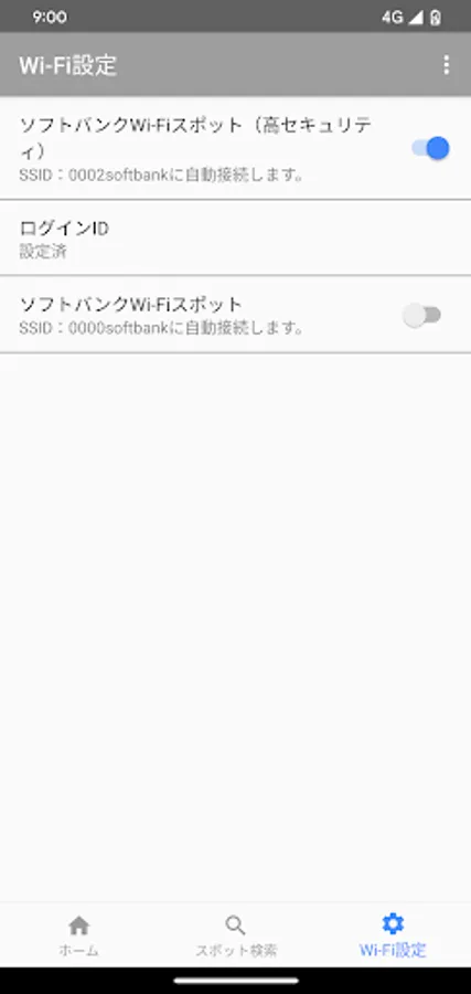 ・ For Wi-Fi frequency 5GHz compatible terminals, app notifications can be reduced by turning on only "SoftBank Wi-Fi Spot (high security)" from the Wi-Fi spot settings in the app.