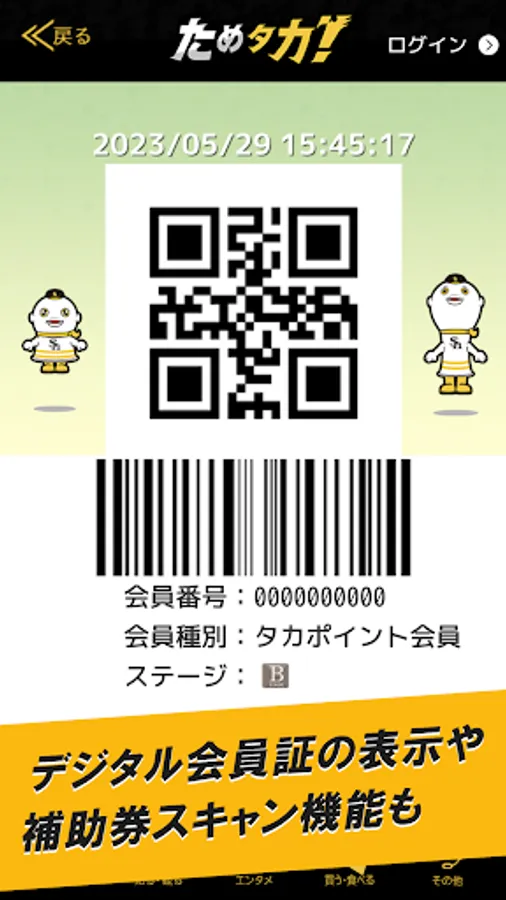 Because hawk! ~Taka Point Accumulation App~ is an app that allows you to accumulate Taka Points (Fukuoka SoftBank Hawks point program) in various situations such as games, shops, TV, and stadium visits. The accumulated points can be exchanged for various limited benefits such as tickets, goods, and event participation rights from My Page.