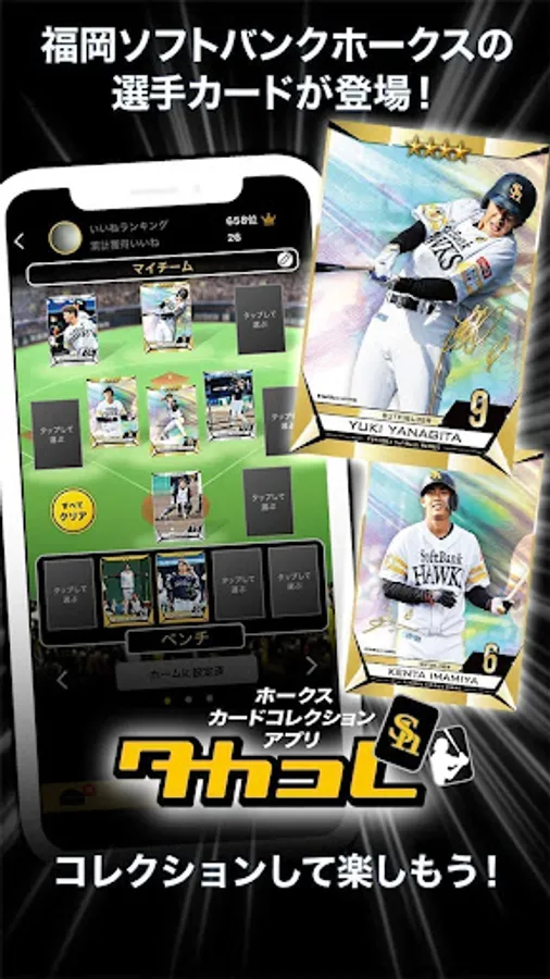 This is the official card collection app where you can get the original player card of Fukuoka SoftBank Hawks.