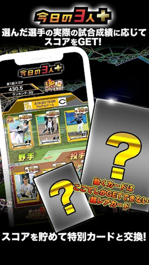 Collected “player cards” can be traded with other players, and can also be used to support your favorite player with “Today’s 3+”.