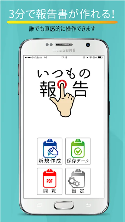 いつもの報告は、今お使いの報告書のフォーマットをそのまま編集できます。新しく書式を覚える必要がないので、どなたでも直感的に操作できます。あらかじめ初期値を設定できるので、必要な箇所のみを編集するだけで報告書が作成できます。