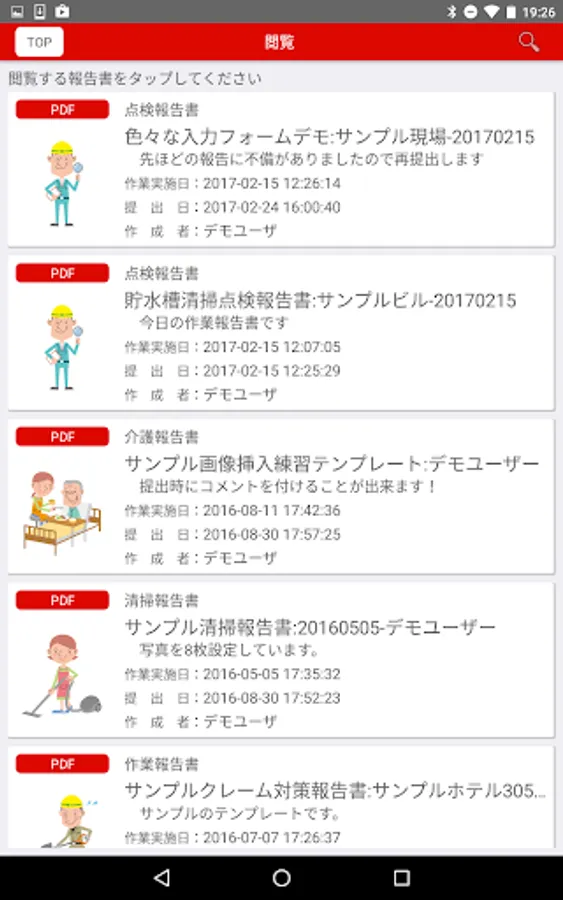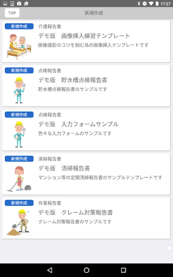 複製機能がついてます。過去に作った報告書を複製することができます。定期清掃や定期点検などの報告書は、複製機能を使えば写真を差し替えるだけで報告書が完成します。