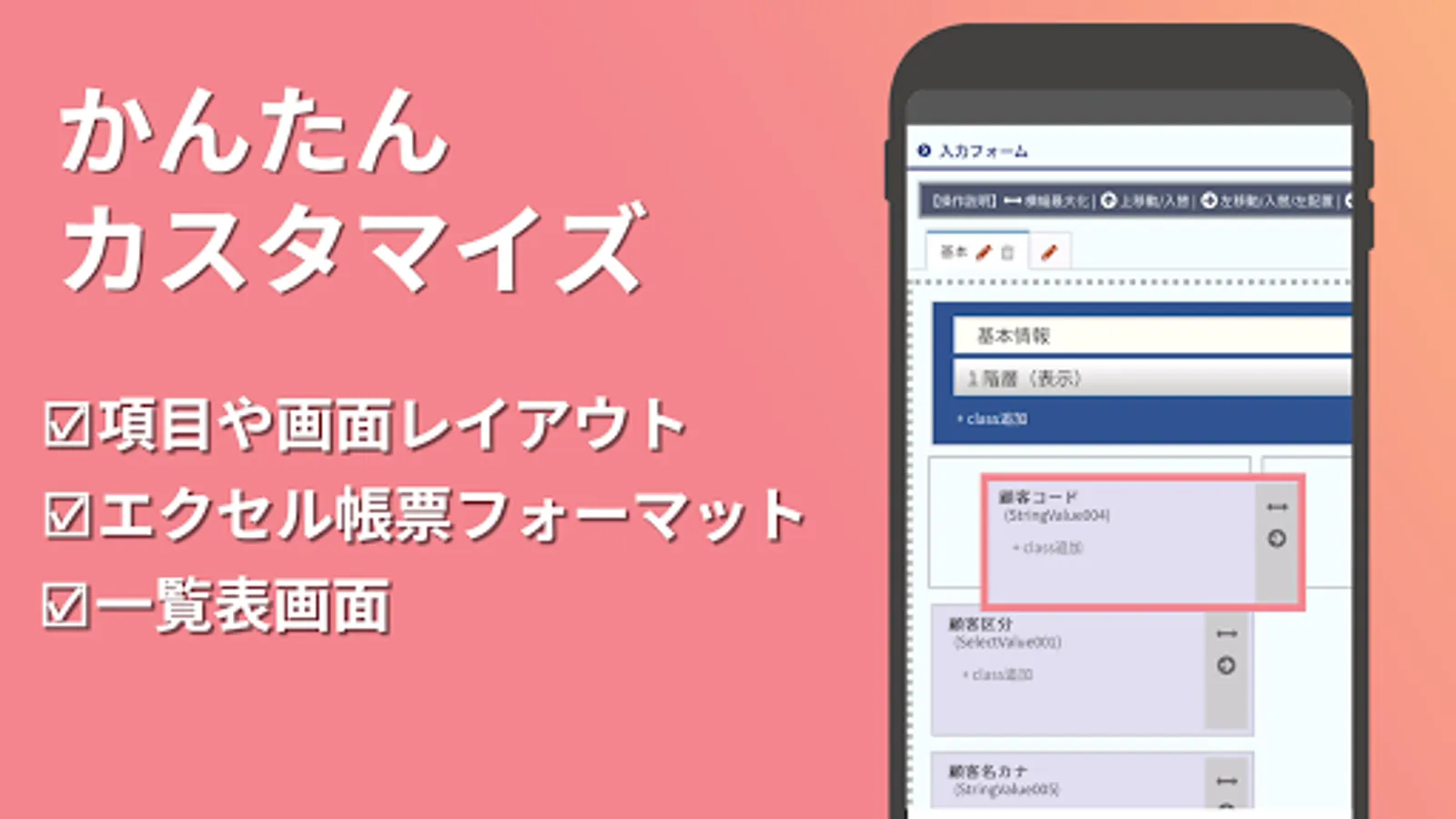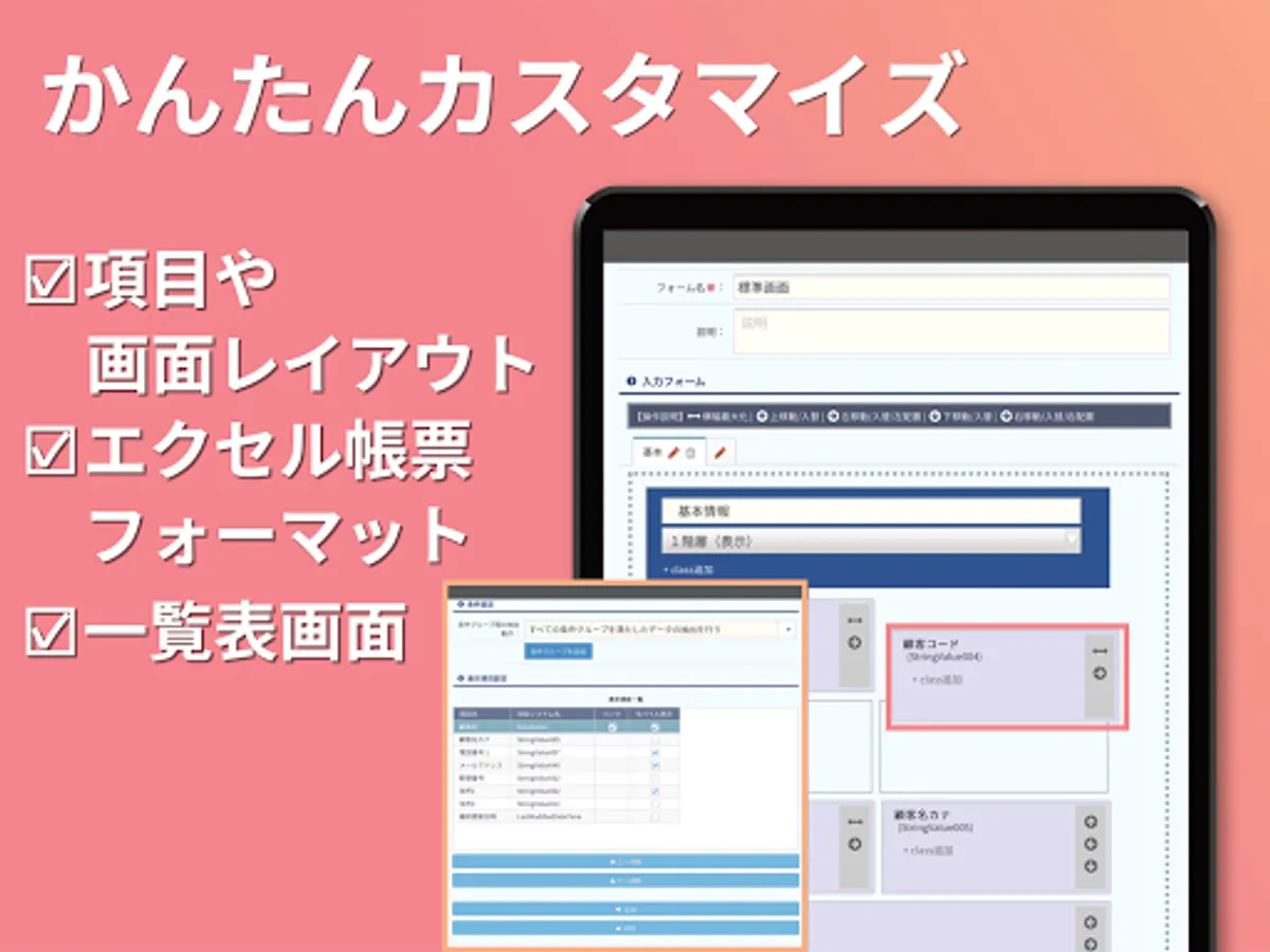 ・ 項目や画面を簡単にカスタマイズ可能。あらゆる業種や用途にフィット。