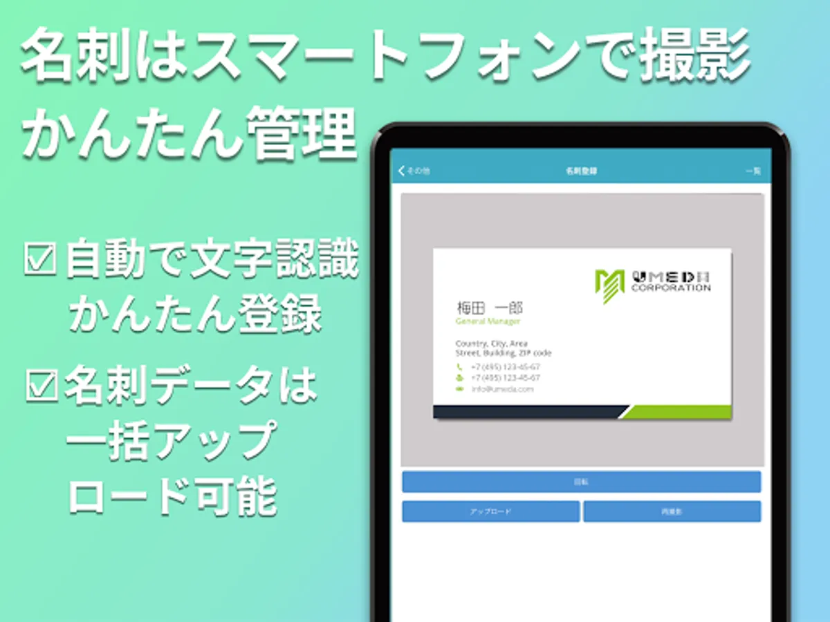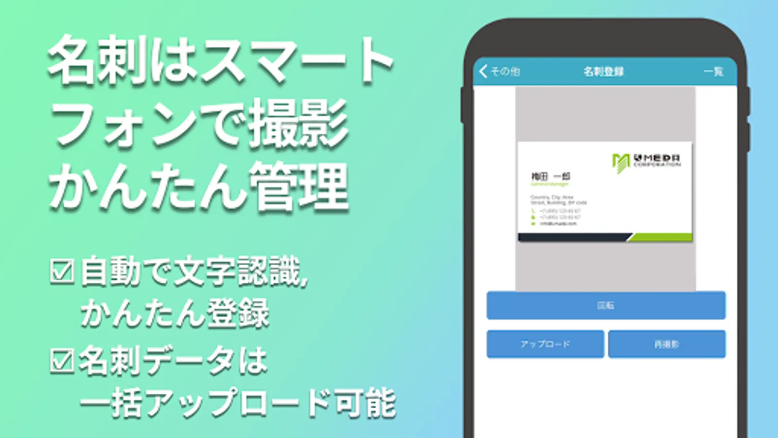 ・ 獲得した名刺をすぐにスマホで撮影。簡単に登録できます。