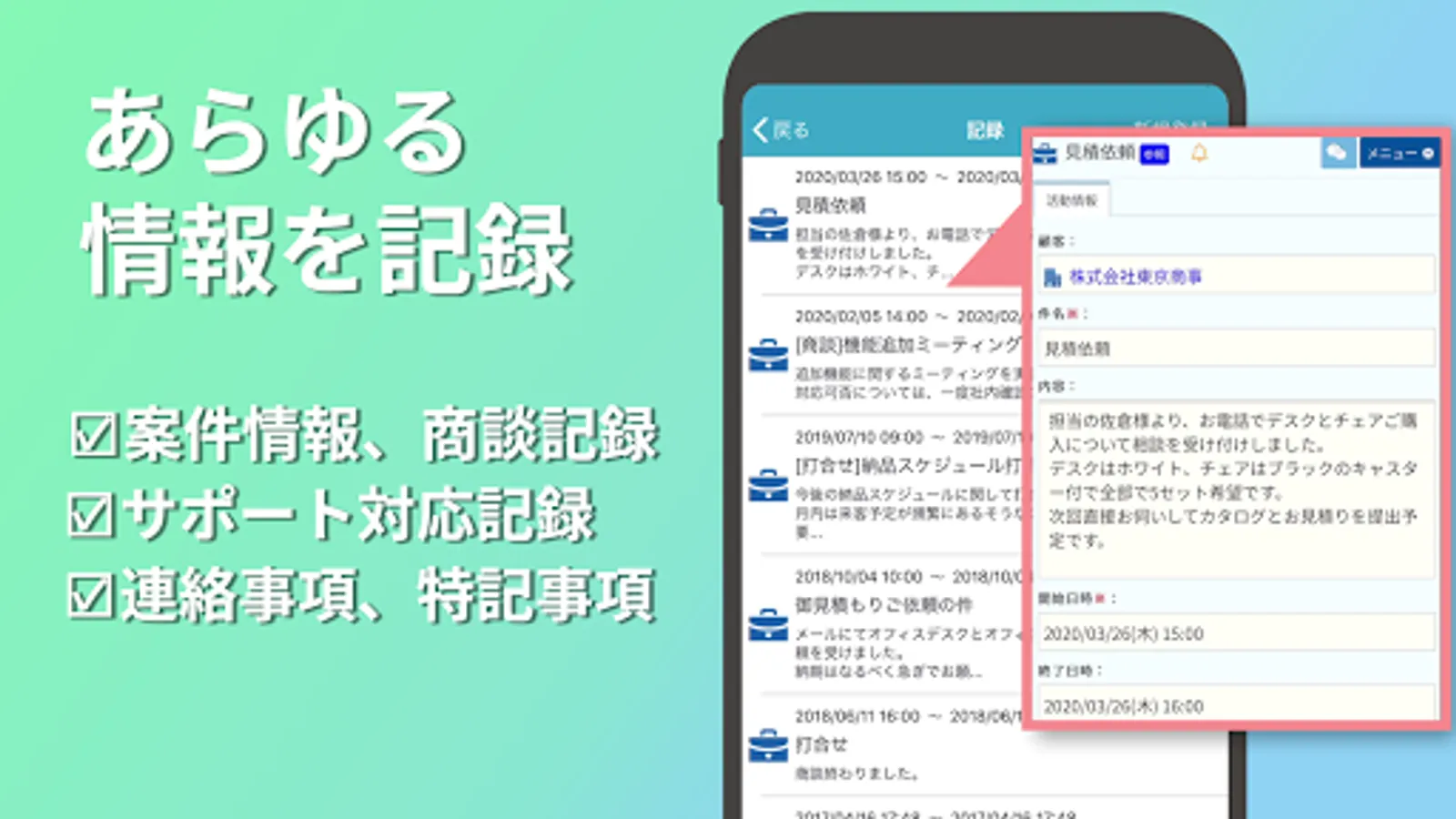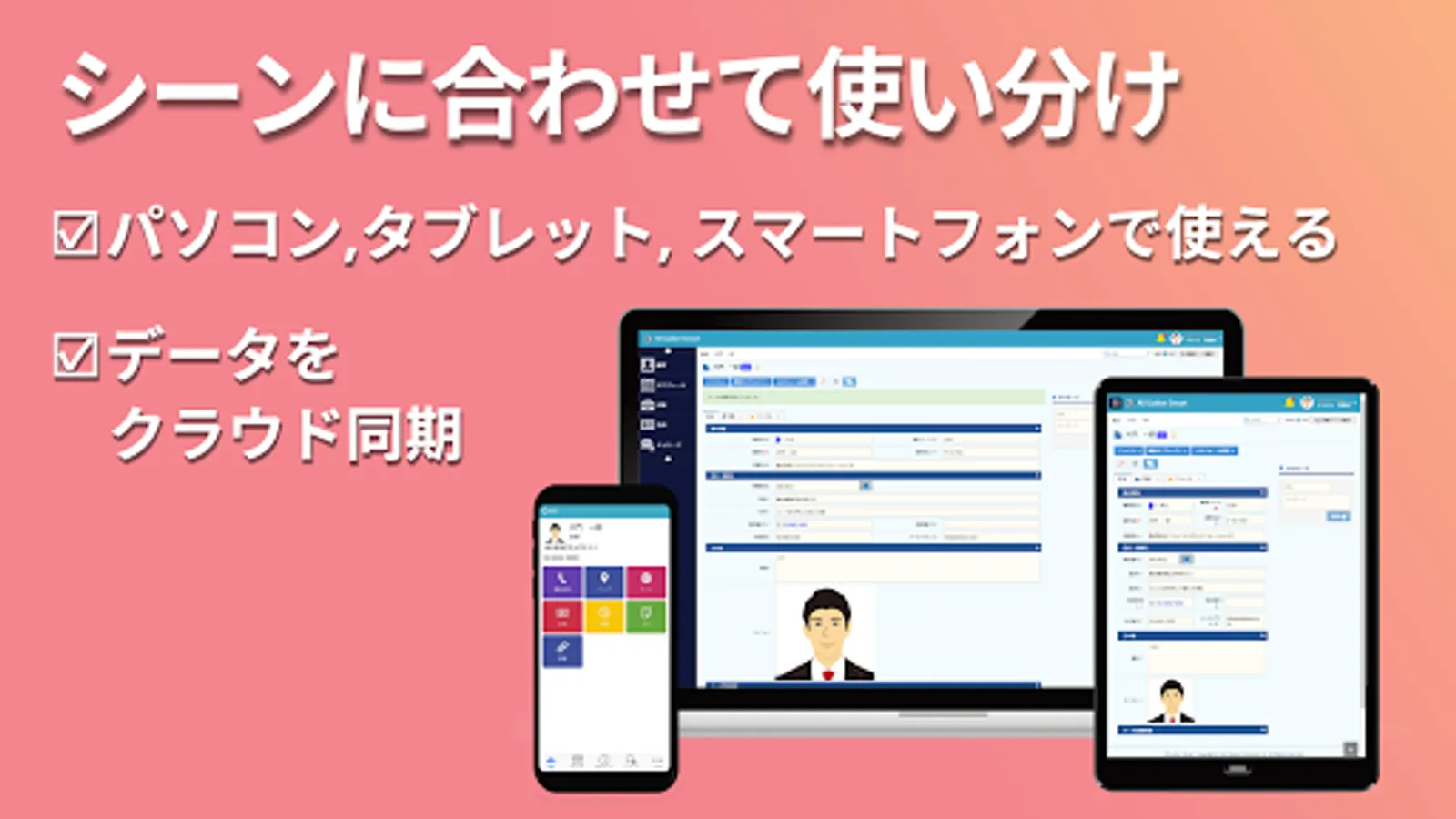 本アプリは、顧客管理クラウドサービス「All Gather Smart」をモバイルでお使い頂くためのアプリです。シンプルで使いやすく、顧客管理の他、日々の記録管理やスケジュール管理、名刺管理、メッセージツールも搭載しているので、ビジネスやプライベートなどあらゆるシーンでお使いいただけます。