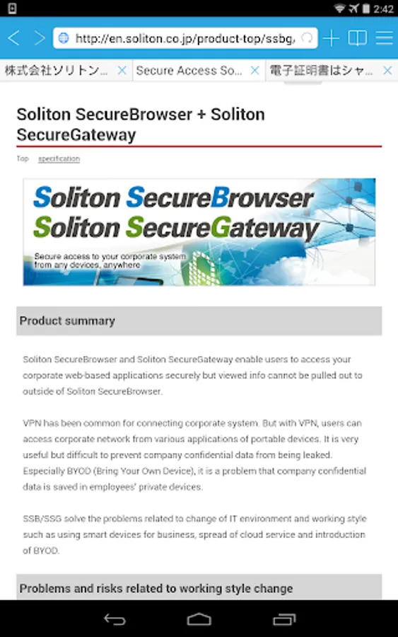 For details please visit Soliton SecureBrowser Pro/Soliton SecureGateway website: