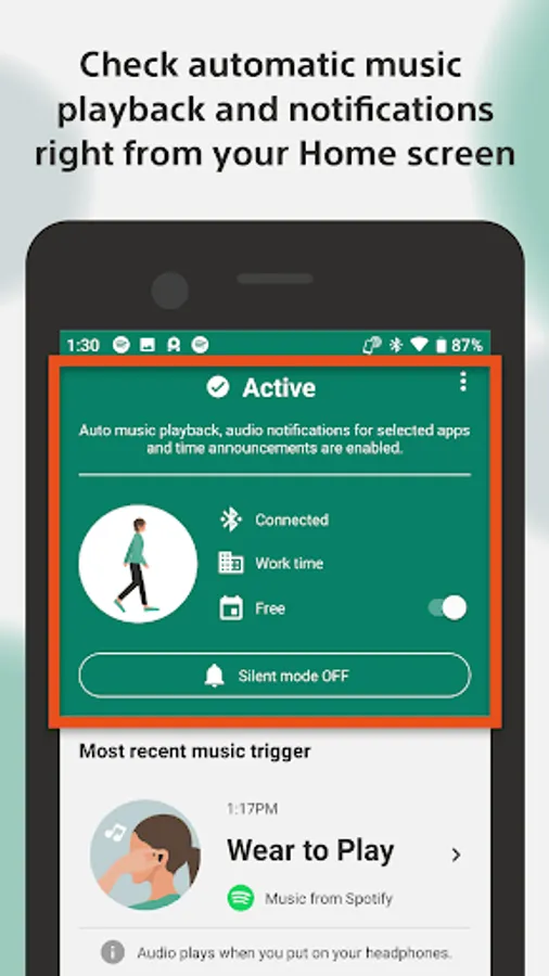 Music immediately plays when you take your headphones out of their case and put them on. You don't need to do anything on your smartphone. You can even get a read out of the date and weather when you put on your headphones for the first time of the day.