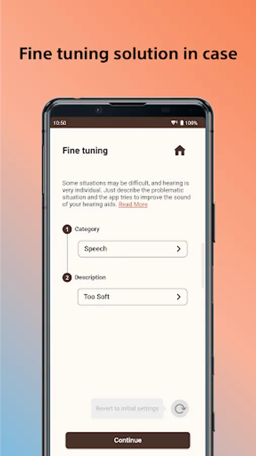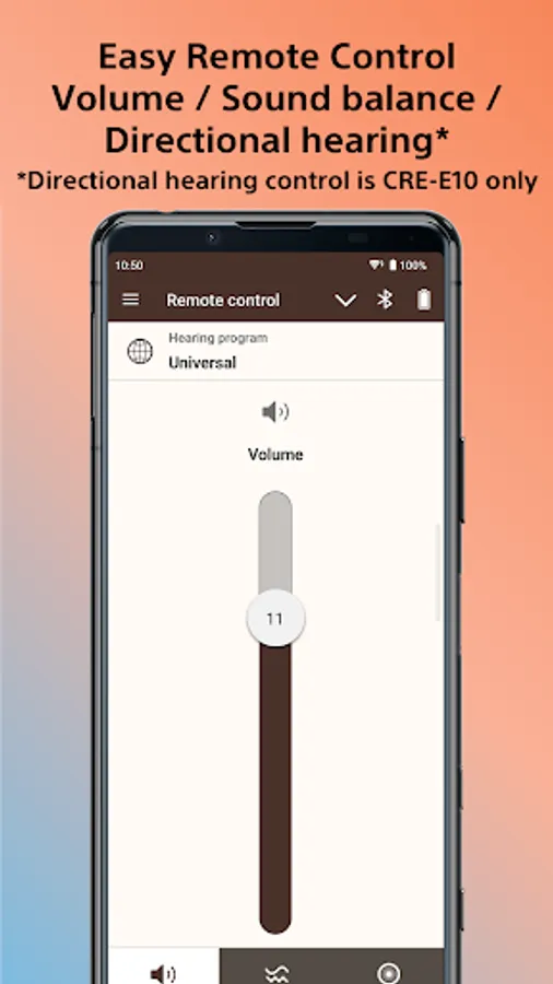 This app is for Sony self-fitting hearing aids, CRE-C10 and CRE-E10. Easy and quick initial setup and remote control with kind instructions.