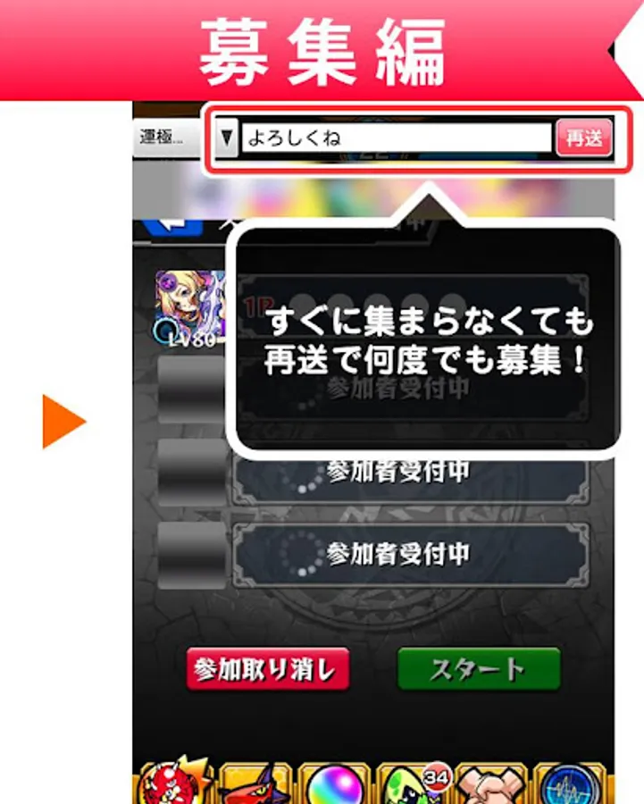 1. Press "Quest"-> "Multi Recruitment"-> "Recruit by LINE" from Monst.