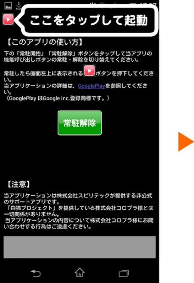 アプリを起動し、「常駐解除」を押す