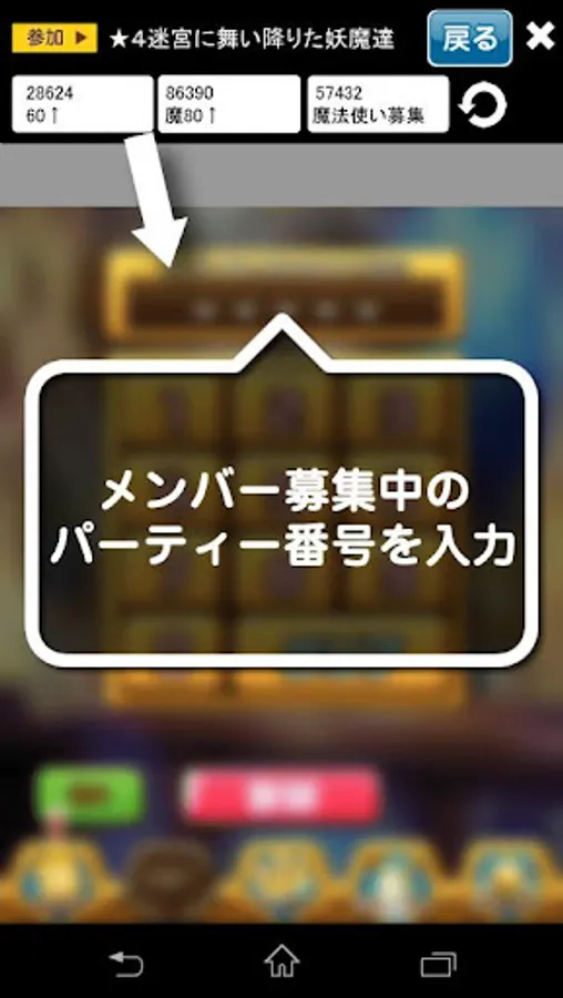 2.ダンジョンを選択し、【参加】ボタンを押す