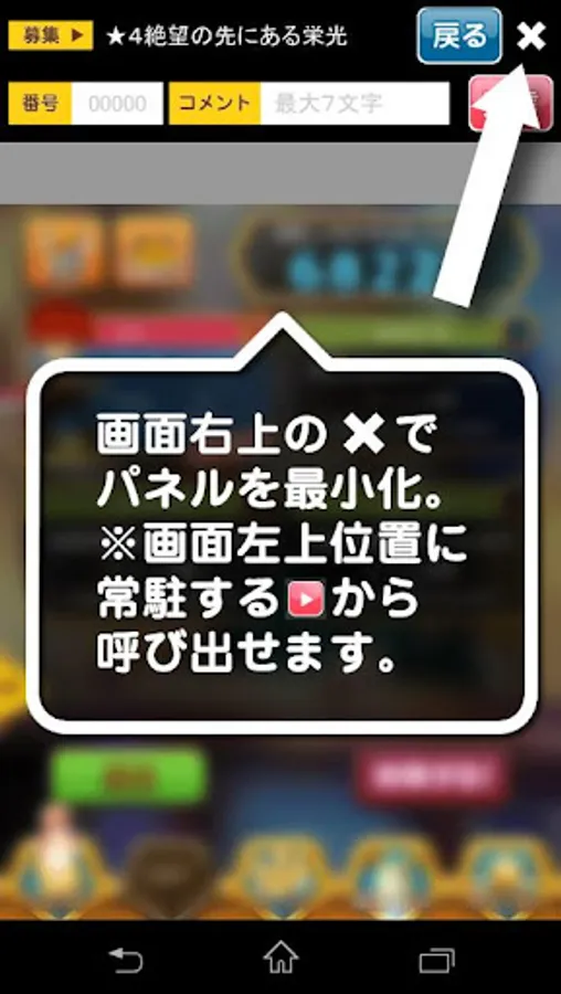 ・募集時 戻る・最小化ボタンで募集完了送信
