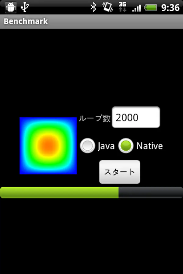 通常のAndroidアプリはJavaで実装されますが、拡散方程式計算のようにパフォーマンスが