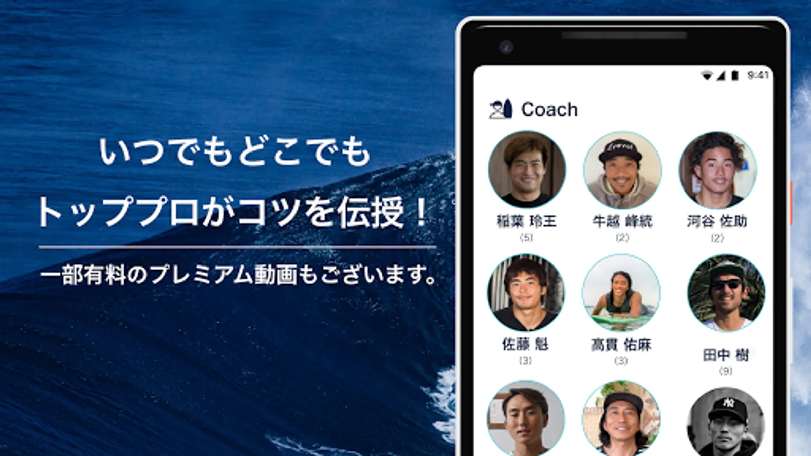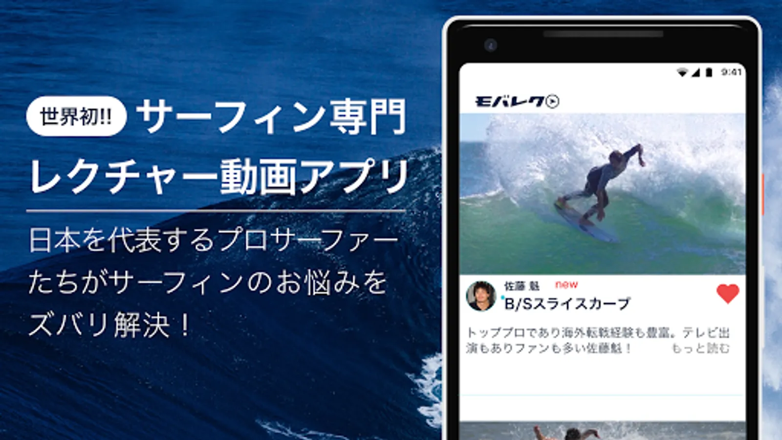 Mobarek is an app that Japanese top professional surfers will explain in an easy-to-understand manner using videos, from the basics of surfing for beginners to techniques for advanced users, with the concept of "an app that makes surfing more fun".