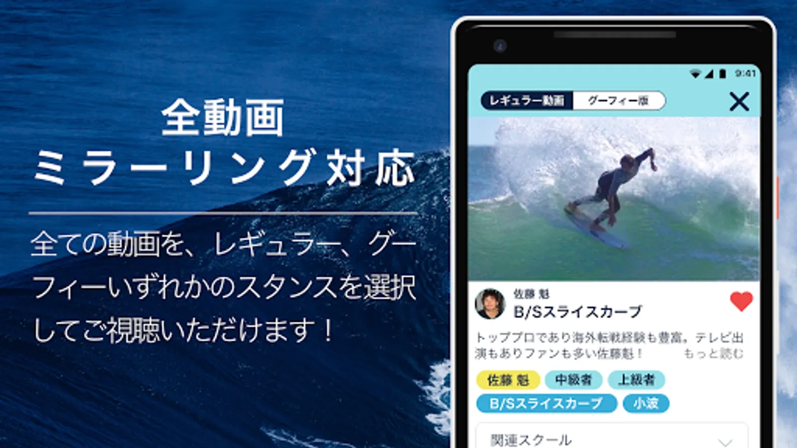 Mirrored videos of regular version and Goofy version are prepared for each video, and you can watch the video according to your stance.