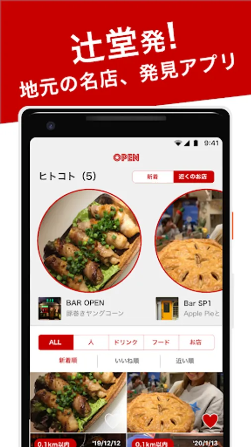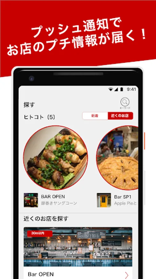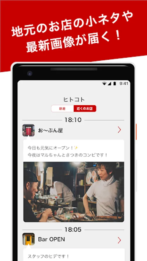 "Hitokoto": Information such as comments and images posted by the shop staff using OPEN with a time limit setting.