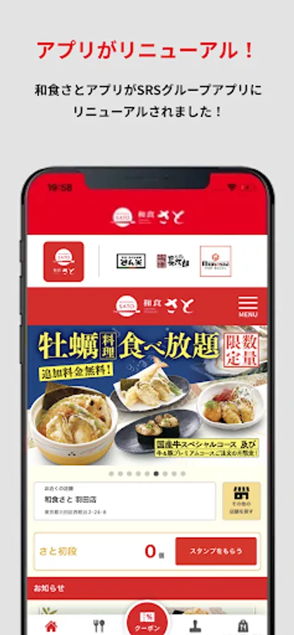 You can receive stamps at Japanese food stores and SRS Group (Nigiri Chojiro, etc.).
