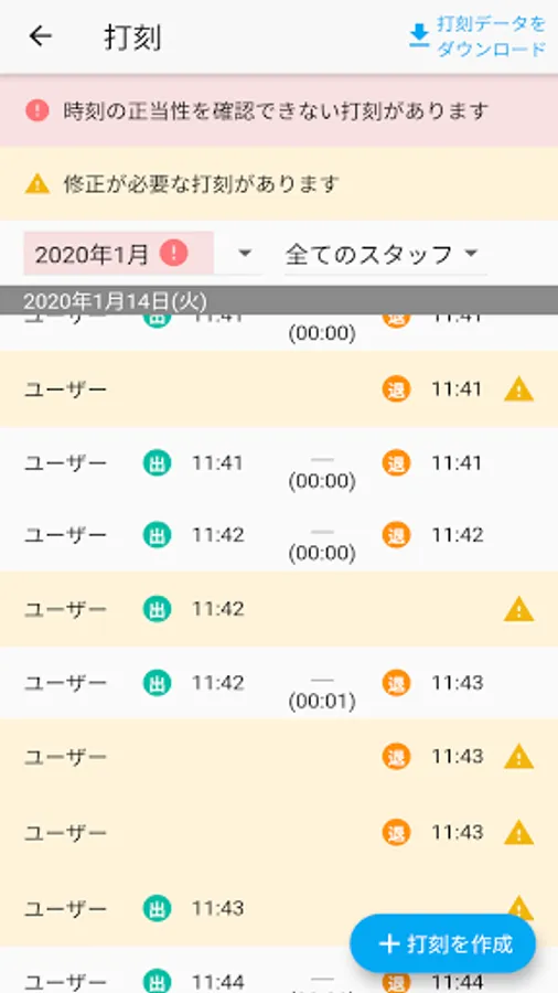 デジタルタイムカード 管理アプリ