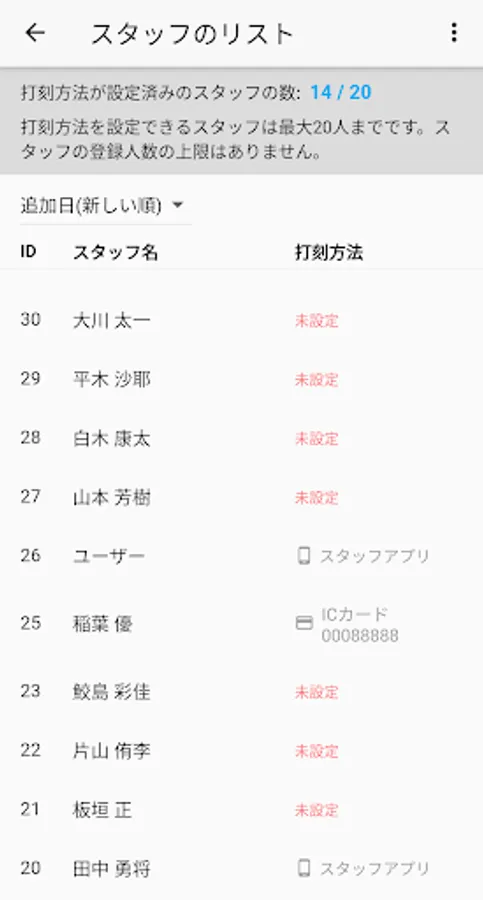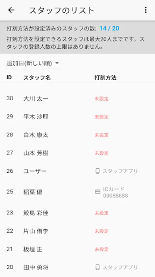 デジタルタイムカード スタッフアプリ