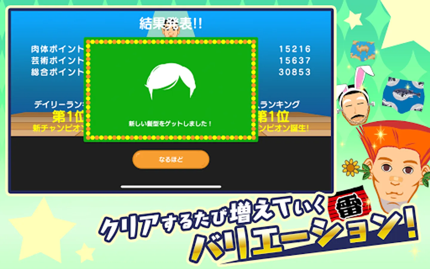 On the final day, the macho characters will perform at national competitions and aim for high scores.
