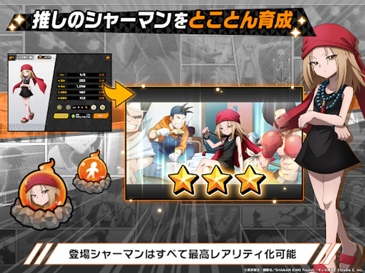 The completely new animation of the popular comic "SHAMAN KING" by Hiroyuki Takei, who has sold over 38 million copies in the series, has been made into a smartphone game for the first time!