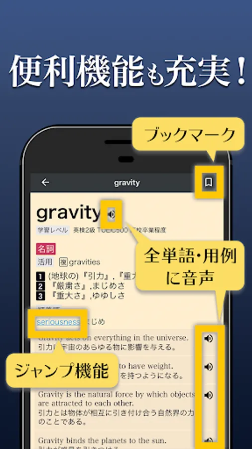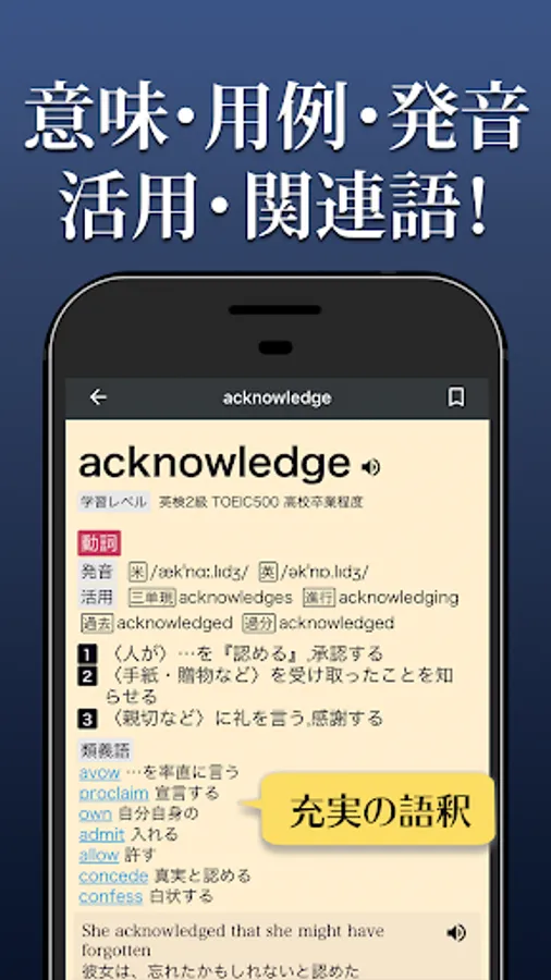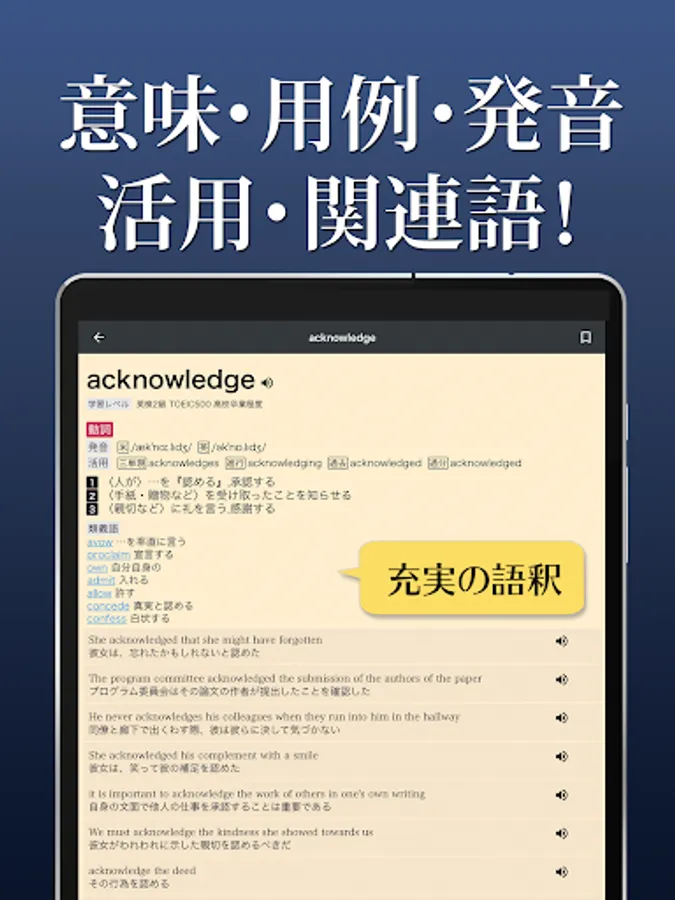 Impressive searchability. Plenty of explanations and examples. The ultimate English dictionary app that even supports pronunciation playback of example sentences!