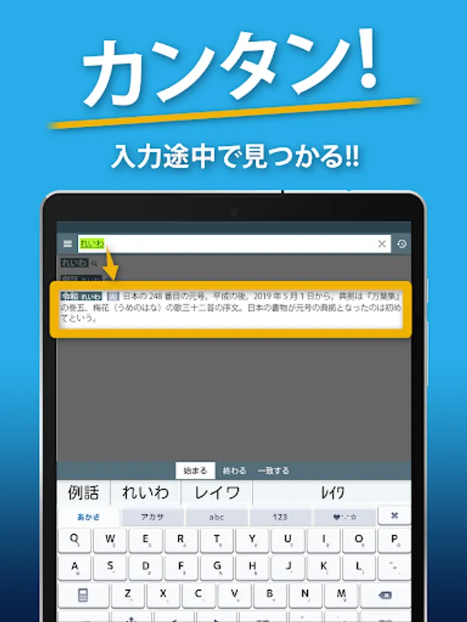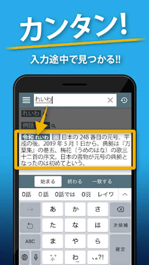 Just enter halfway and the meaning and reading you want to look up will be displayed in one shot!
