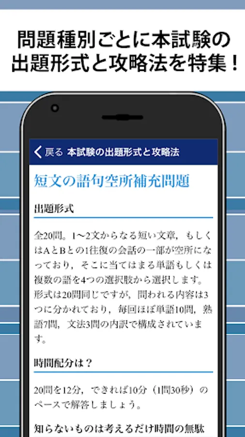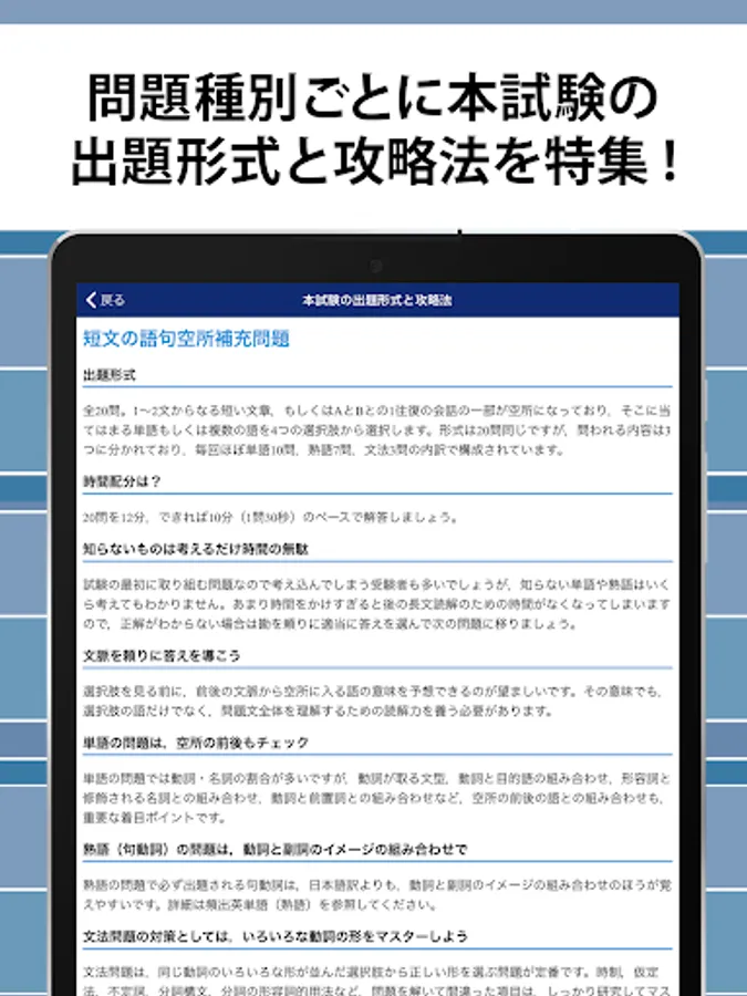 初めて英検2級を受験する人向けに「出題形式と攻略法」も収録。スキマ時間にコツコツ問題を解いて英検2級合格を目指そう!