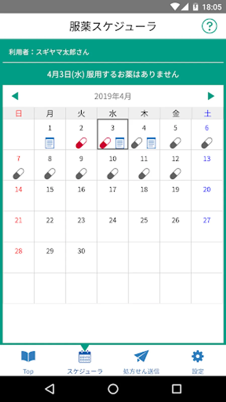 (2)服薬チェック:登録された情報に応じた服薬状況の管理が可能