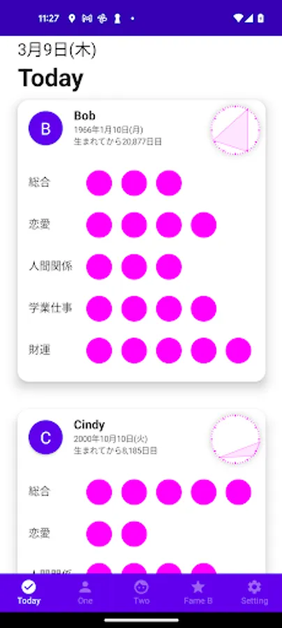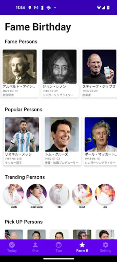 FameBirthday is a fortune-telling feature inspired by learning from successful individuals. We particularly recommend GeniusSearch. As of April 2023, the 58,712 people registered in the Japanese Wikipedia are the targets for search. Tap the G mark on the right side of "Who are you looking for?".