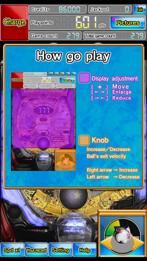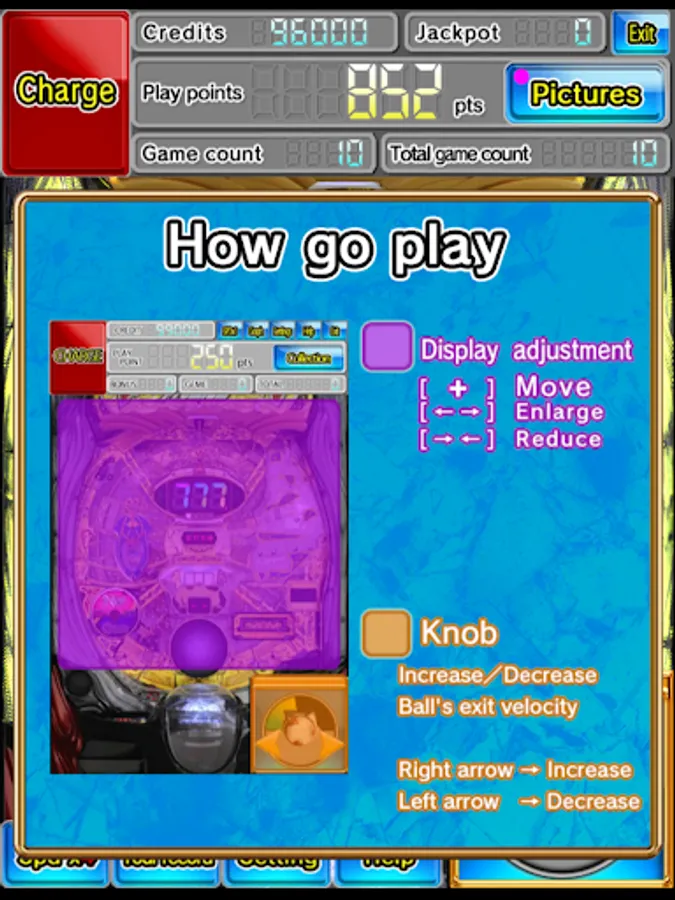 To help you understand how to play pachinko, navigation is provided on the screen.
