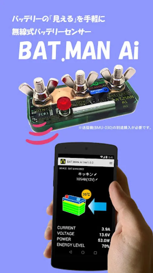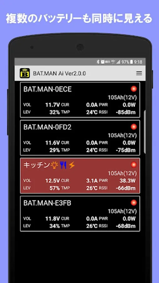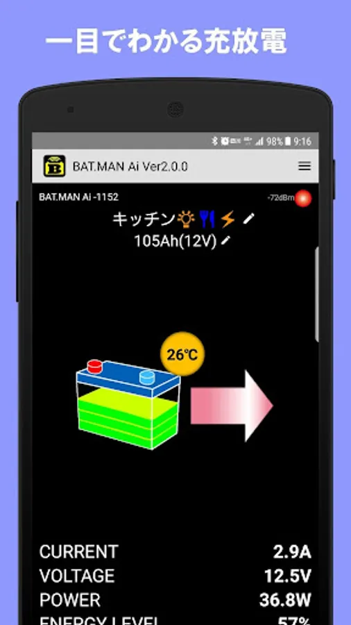 キャンピングカー,船舶用サブバッテリー無線モニターアプリ。