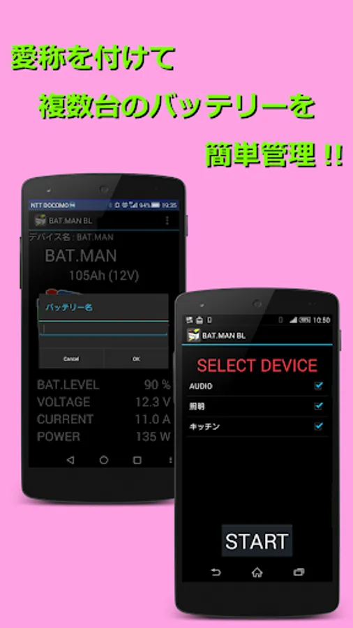 BAT.MANご購入前にご使用になるスマートフォンに本テストアプリをインストールしていただき、画面が適切に表示されるかお試し頂けます。