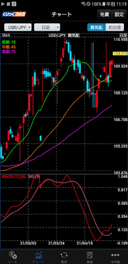 2. Chart display (simple moving average, Ichimoku Kinko Hyo, Bollinger Bands, Stochastic Oscillator, RSI, MACD, etc.)