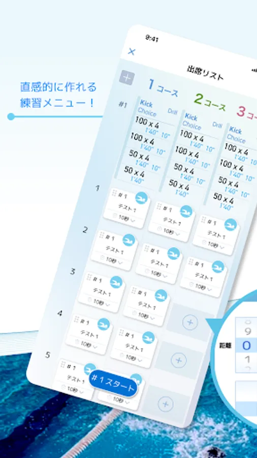 The app can take the place of cycle management, time reading, and recording, allowing coaches to focus more on the athlete's swim. Loud voice management is possible by connecting to a bluetooth speaker, etc.