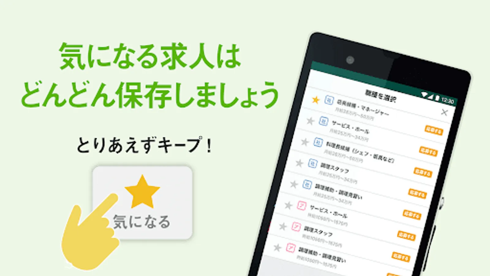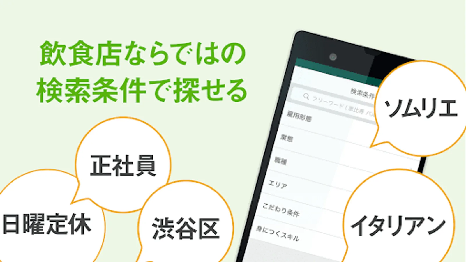 It is an Android application of "Job restaurant dot com", a job information site specializing in restaurants, boasting more than 50,000 cumulative posted stores and more than 250,000 members.