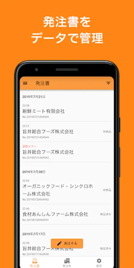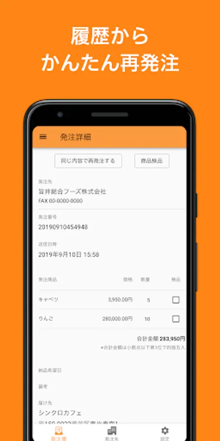 発注履歴がクラウド上に保管され、スマホ、タブレット、PCなどあらゆる端末からいつでも閲覧が可能です。